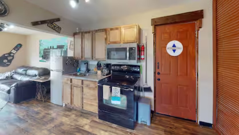 Booking both sides of The Hobo Hideaway allows you not only to sleep 8, but gives you 2 kitchens, 2 full bathrooms, 2 livingrooms, a dining room, and washer & dryer. Boom!